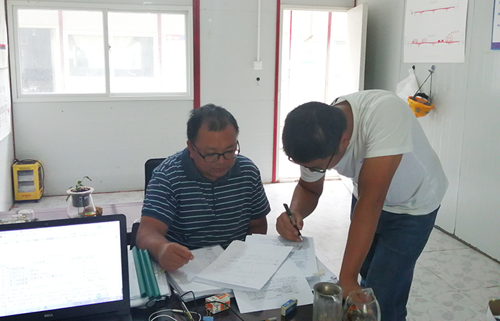 每天早晨,師徒二人總是早早起床,帶上圖紙、卷尺、測量儀器去到工地現(xiàn)場,擋墻基坑、梁場邊坡,隨處可見他們工作時忙碌的身影。晚上,他倆時常“宅”在項目部技術科那間小小的、略顯雜亂的辦公室里研究施工方案、調(diào)整施工計劃,直至月沒參橫。