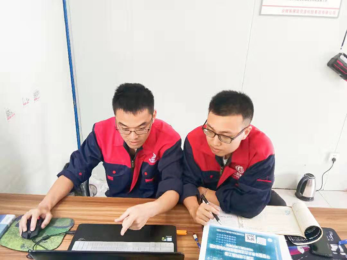 回憶起師徒倆第一次見面,恰好是袁野到工地報道的那天,他背著一個大包,拖著半人高的行李箱,從昆明輾轉(zhuǎn)到鎮(zhèn)雄,一路上風(fēng)塵仆仆,十分疲憊??粗菔菪⌒⊥现欣钕涞纳碛?,張銳對他印象很深,“工地上哪里經(jīng)得起這么折騰,向來都是輕裝簡行”,張銳事后經(jīng)常拿這件事調(diào)侃他,雖是玩笑話,但其實也藏著他對徒弟的關(guān)心與心疼。