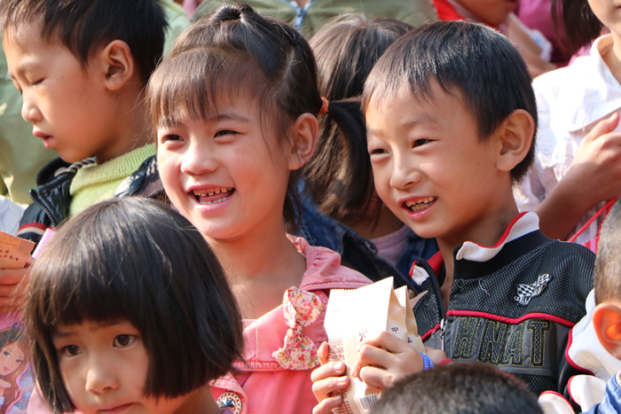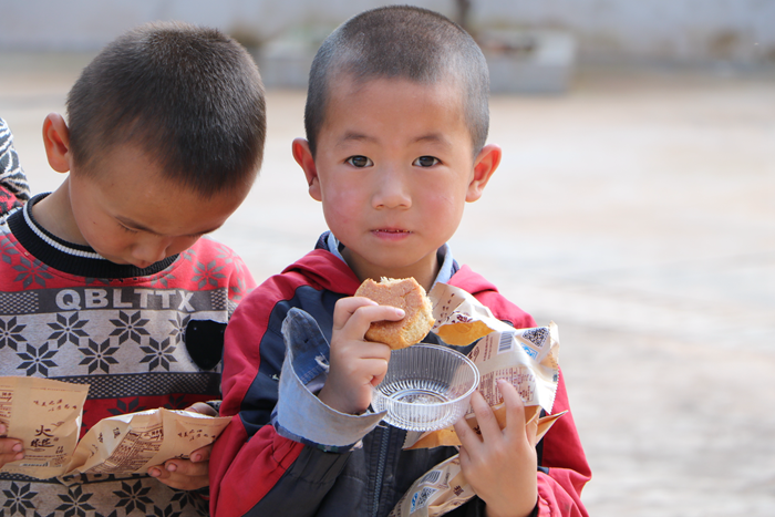 當(dāng)我們把月餅送到孩子們手中時(shí),有的孩子忍不住現(xiàn)場(chǎng)品嘗起美味的月餅來(lái),有的孩子則拿著月餅左瞧瞧、右看看,舍不得吃掉。“小朋友,你怎么不吃呢?”“我要給我妹妹帶回去,媽媽生病了,爸爸在外打工掙錢(qián),我們家沒(méi)買(mǎi)過(guò)這種粑粑吃?!毙∧泻⒚鎸?duì)我們一點(diǎn)也不害羞,而是一本正經(jīng)地講述著自己不吃月餅的“小秘密”。