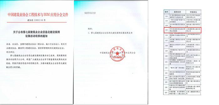 近日,中國(guó)建筑業(yè)協(xié)會(huì)工程技術(shù)與BIM應(yīng)用分會(huì)發(fā)布了《關(guān)于公布第七屆建筑業(yè)企業(yè)信息化建設(shè)案例征集活動(dòng)結(jié)果的通知》(建協(xié)技[2021]01號(hào)),由公司申報(bào)的《釘釘系統(tǒng)信息化綜合管理應(yīng)用案例》獲評(píng)第七屆建筑業(yè)企業(yè)信息化建設(shè)案例Ⅲ類成果。