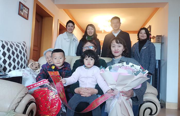 隆冬送祝福,慰問暖人心。1月28日,在新春佳節(jié)即將到來之際,公司副總經(jīng)理石俊、工會(huì)主席冷蕊、財(cái)務(wù)總監(jiān)楊潔代表公司領(lǐng)導(dǎo)班子,對堅(jiān)守在海外建設(shè)一線的朱潤、徐斌兩位職工家屬進(jìn)行走訪慰問,為他們送去大米、糧油、春聯(lián)和“?!弊值任繂柶泛臀繂柦?,向堅(jiān)守在海外施工一線的職工們致以新春的誠摯問候和美好祝愿,向?qū)景l(fā)展給予關(guān)心和支持的海外職工家屬表示由衷感謝。