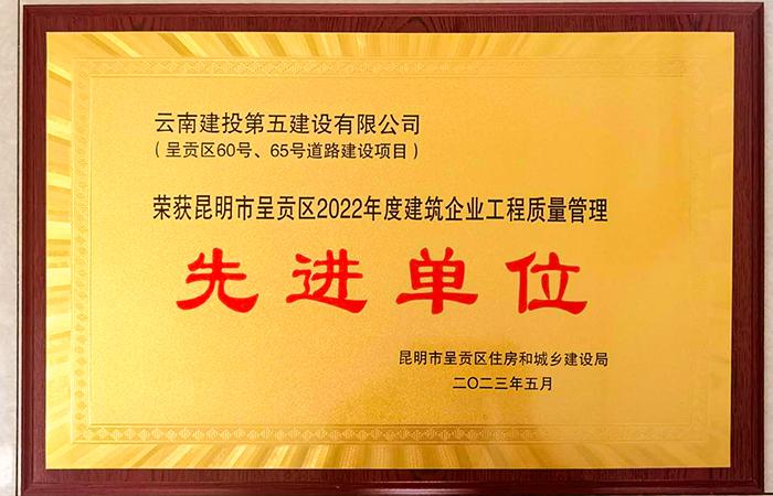 近日,由第二直管項目部負(fù)責(zé)施工的呈貢區(qū)60號、65號道路建設(shè)項目榮獲呈貢區(qū)住房和城鄉(xiāng)建設(shè)局授予的昆明市呈貢區(qū)2022年度建筑企業(yè)工程質(zhì)量管理“先進(jìn)單位”榮譽(yù)稱號。