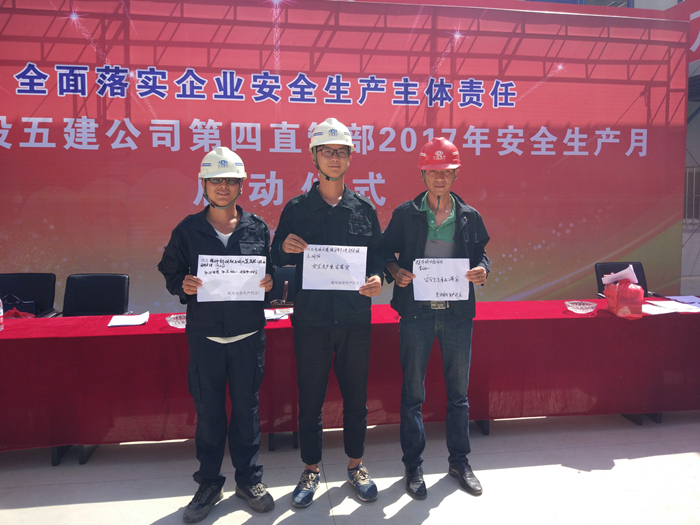 啟動(dòng)儀式上,直管部安全總監(jiān)宣讀了《云南建投第五建設(shè)有限公司第四直管部2017年“安全生產(chǎn)月”活動(dòng)方案》,直管部黨支部、工會(huì)和團(tuán)支部還同時(shí)啟動(dòng)了“青年安全和產(chǎn)示范崗”創(chuàng)建評(píng)比活動(dòng),勞務(wù)班組作業(yè)人員代表、項(xiàng)目經(jīng)理作了安全生產(chǎn)宣誓并承諾,與會(huì)領(lǐng)導(dǎo)為各項(xiàng)目部及班組發(fā)放了安全生產(chǎn)宣傳資料及“送清涼”的防暑藥品,將直管部的關(guān)心帶到施工一線,為廣大一線員工帶來清涼。