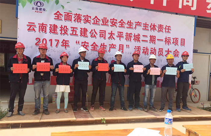 技術(shù)支持: 方森科技 6月8日,第二直管部在安寧太平項目召開以“全面落實(shí)企業(yè)安全生產(chǎn)主體責(zé)任”為主題的2017年“安全生產(chǎn)月”活動啟動大會。直管部班子成員、項目經(jīng)理、二線全體人員、建設(shè)單位、監(jiān)理單位、勞務(wù)公司、專業(yè)分包單位的現(xiàn)場主要負(fù)責(zé)人共計55人參加了會議。