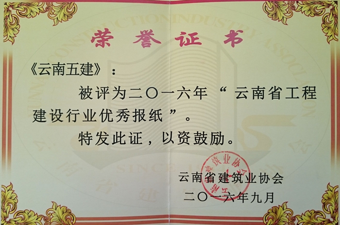 技術支持: 方森科技 9月21日,云南省建筑業(yè)協(xié)會發(fā)布了《關于對2016年度云南省工程建設行業(yè)優(yōu)秀期刊、報紙的表彰決定》(云建協(xié)[2016]32號)。公司《云南五建》報獲評“云南省工程建設行業(yè)優(yōu)秀報紙”。