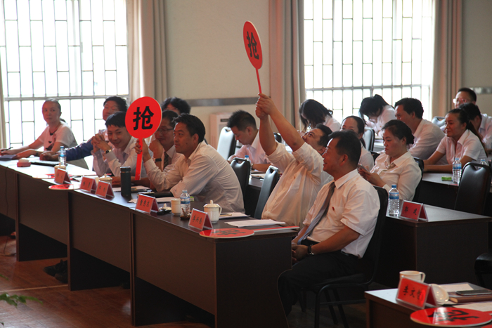 經(jīng)過初賽的角逐,進入決賽的共有六支代表隊,分別是:第五直管部、公司機關(guān)、五〇五直管部、五〇二直管部、租賃中心、第三直管部代表隊。決賽環(huán)節(jié)分為指定選手必答題、自選選手必答題、小組風(fēng)險題、搶答風(fēng)險題,決賽還特別加入了團隊鼓勵題,由公司領(lǐng)導(dǎo)進行搶答,為制定的代表隊進行加分,極大的鼓舞了各代表隊的士氣。