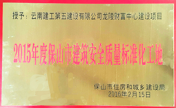 技術(shù)支持: 方森科技 2016年3月,由公司承建第四直管項目部施工的保山市人民醫(yī)院遷建(一期)項目——醫(yī)技綜合樓及龍陵財富中心建設項目兩個工程均榮獲“2015年保山市建筑安全質(zhì)量標準化工地”。