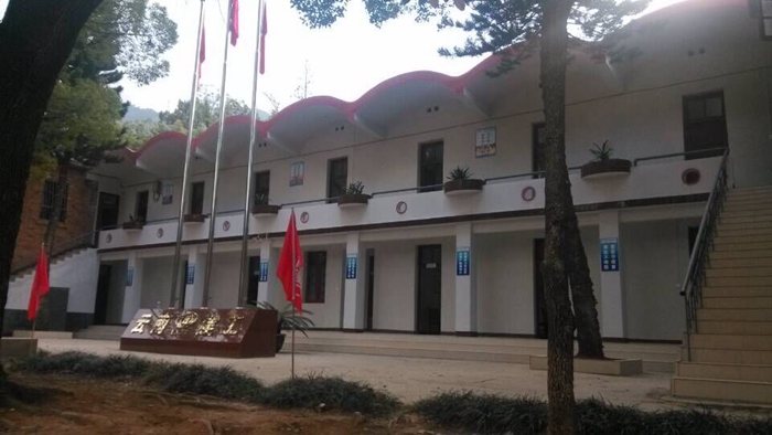 駐地辦公區(qū)印有“云南建工”標識的小紅旗、安全標語及宣傳欄