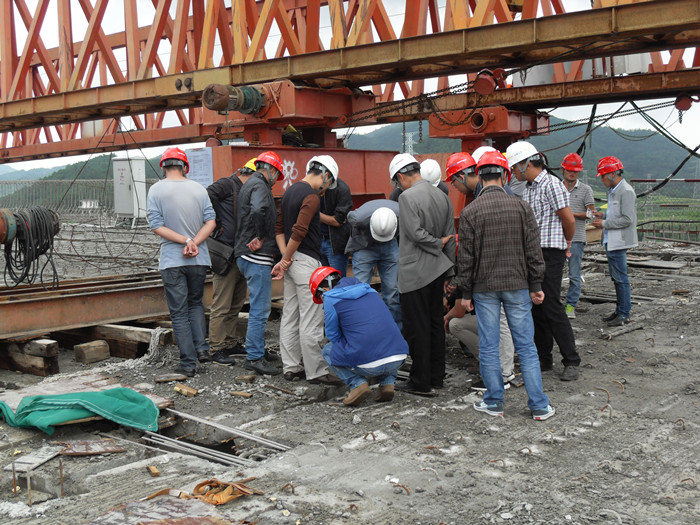 技術(shù)人員對(duì)橋面施工進(jìn)行講解