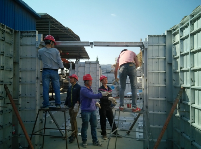 為了推進(jìn)鋁合金模板的使用,直管部于2015年4月成立鋁合金模板施工工藝小組,由直管部機械科帶隊牽頭、各在建項目部分工長共9人參與,自4月15日起開展學(xué)習(xí)培訓(xùn),6月30日結(jié)束。在兩個半月的時間里,工藝小組先后到昆明周邊鋁合金模板生產(chǎn)廠、涼亭郵政小區(qū)現(xiàn)場、建水二公司工地等地,重點培訓(xùn)了鋁合金模板的生產(chǎn)流程、成品組裝及技術(shù)改進(jìn)、質(zhì)量通病治理、質(zhì)量及安全控制等內(nèi)容,完成了從施工現(xiàn)場組裝到澆砼、拆模、砼實、檢驗,再到質(zhì)量隱患評價、治理,最后提出改進(jìn)意見的學(xué)習(xí)與實踐。
