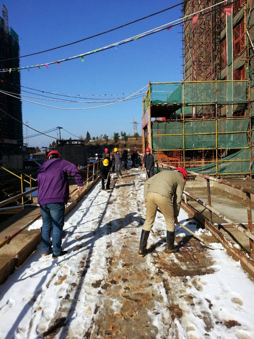 自去年底以來(lái),機(jī)場(chǎng)片區(qū)已經(jīng)迎接了三四場(chǎng)大降雪,白茫茫的雪塊覆蓋著周?chē)幕纳剑屵@里的氣溫比市區(qū)低了4、5度,幸好之前項(xiàng)目部統(tǒng)一為管理人員購(gòu)置了毛毯等用品,讓大家能在寒冷的氣溫下御寒。都說(shuō)瑞雪兆豐年,雖然降雪給項(xiàng)目部的工作添了亂,但大家還是在項(xiàng)目經(jīng)理的帶領(lǐng)下,以滿滿的熱情掃雪除痕,在快樂(lè)的氣氛里繼續(xù)生產(chǎn),營(yíng)造了和諧的工作氛圍,這份樂(lè)觀感動(dòng)著項(xiàng)目部的每一個(gè)人。