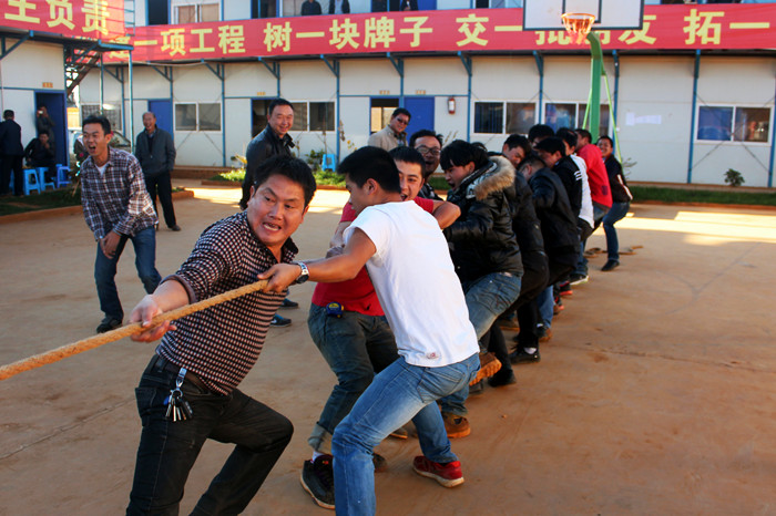聯(lián)歡活動中,第五直管項目部和第八直管項目部、甲方與監(jiān)理代表各進行了一場精彩的籃球友誼賽。隨后,甲方、監(jiān)理方、第五直管項目部、第八直管項目部又分成了4個小組,分別進行了拔河比賽,現(xiàn)場氣氛十分熱烈。