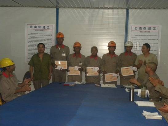 為確保勞動競賽順利開展,項(xiàng)目部首先成立了競賽活動領(lǐng)導(dǎo)小組,結(jié)合生產(chǎn)實(shí)際,制定了行之有效的《勞動競賽活動實(shí)施辦法》。競賽活動參賽對象分為操作班組競賽和職工崗位競賽,操作班組競賽以專業(yè)班組為單位,以爭創(chuàng)“紅旗班組”為競賽內(nèi)容,參賽班組涉及木工、鋼筋、混凝土、石工、機(jī)械運(yùn)轉(zhuǎn)、機(jī)械操作、磚工、裝飾(裝修)8個(gè)專業(yè)工種操作班組;職工崗位競賽以爭當(dāng)“崗位先鋒”為內(nèi)容,參賽對象為項(xiàng)目部全體管理人員和工人(包括緬籍工人)。操作班組競賽和職工崗位競賽又各自有具體的考核內(nèi)容。