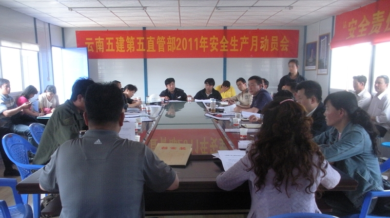6月3日,第五直管部在凱旋利項目部組織了2011年“安全生產月”活動宣貫動員大會,直管部班子成員、在建項目部的項目經理、技術負責人、主工長、質安員、機務員及各部門參加了會議。