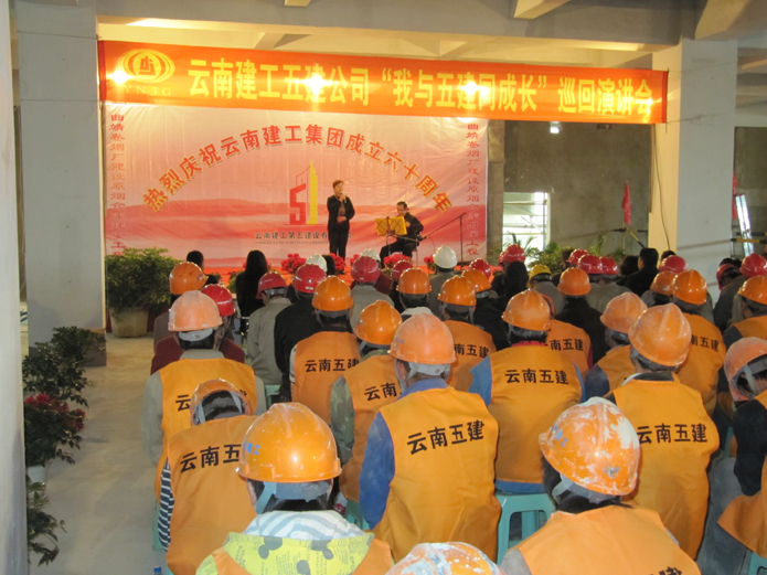2011年3月30日上午十點半,云南五建演講團到五0一直管項目部曲靖卷煙廠原煙倉庫和附屬工程項目部,舉行了以“我與五建同成長”為主題的演講會。