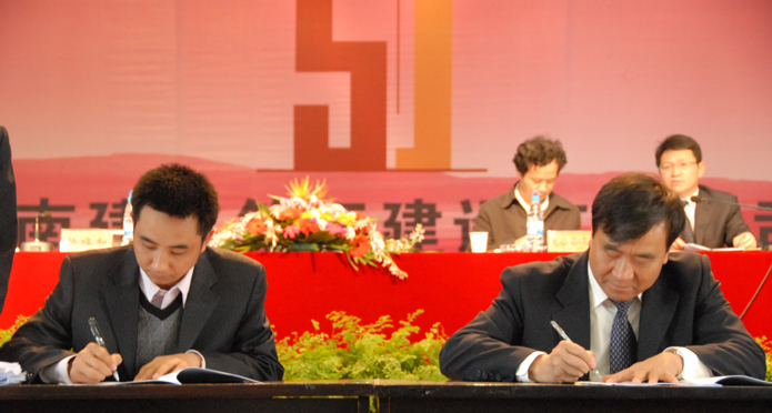 楊福和與各單位(負責人)黨支部書記在會上簽訂2011年黨風廉政建設(shè)責任書。