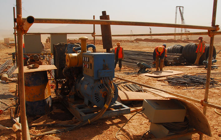 為進(jìn)一步搞好A2標(biāo)段的950多棵人工挖孔樁施工,公司組建了由公司直接管理的新機(jī)場工程項(xiàng)目部。工地上沒有水,施工用水和生活用水就購買從7-8公里以外拉來的水,項(xiàng)目部在各個(gè)施工點(diǎn)搭建了十幾個(gè)臨時(shí)水池蓄水,以保證施工正常進(jìn)行;工地上沒有電,為了保證施工用電,工地上自備了多臺(tái)柴油發(fā)電機(jī)發(fā)電 ;春節(jié)后進(jìn)入昆明的多風(fēng)季節(jié),久旱無雨的新機(jī)場工地上,到處塵土飛揚(yáng)。項(xiàng)目部為每一個(gè)人購置了口罩,不管工地上氣溫多高,都帶著口罩作業(yè),全體人員天天都灰頭土臉地奮戰(zhàn)在工地上。