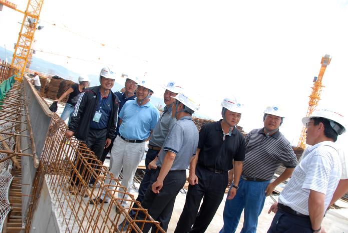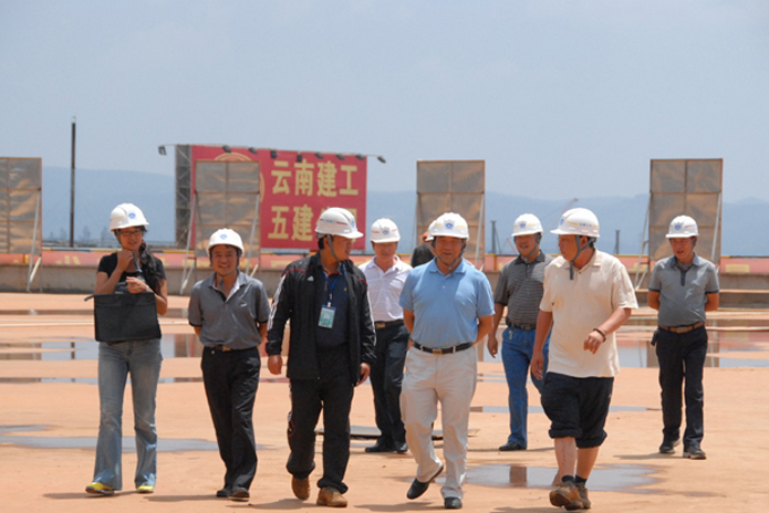 會后,公司楊董事長、方總經(jīng)理等領(lǐng)導參觀了施工現(xiàn)場。