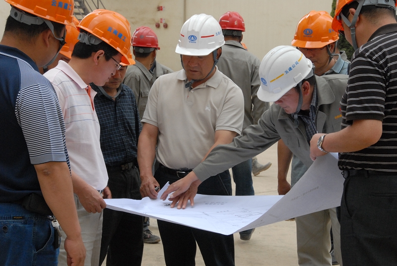 班子成員視察曲靖卷煙廠建設(shè)原煙倉庫建安工程時場景