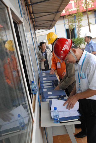 技術支持: 方森科技 7月14日,省、市、區(qū)建設行政主管部門,安全生產監(jiān)督部門和昆明新機場建設指揮部的領導和專家蒞臨五有限公司新機場項目部檢查和指導工作,在參觀了停車樓工程現(xiàn)場施工情況后,召開昆明新機場建設施工安全質量標準化工作現(xiàn)場會。會上,省建設廳副廳長郭五代向五公司頒發(fā)了獎牌和證書。
