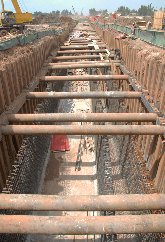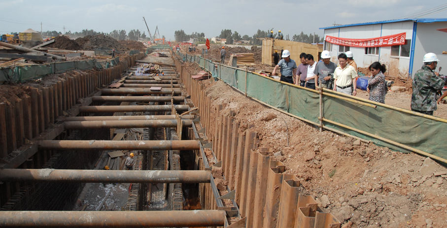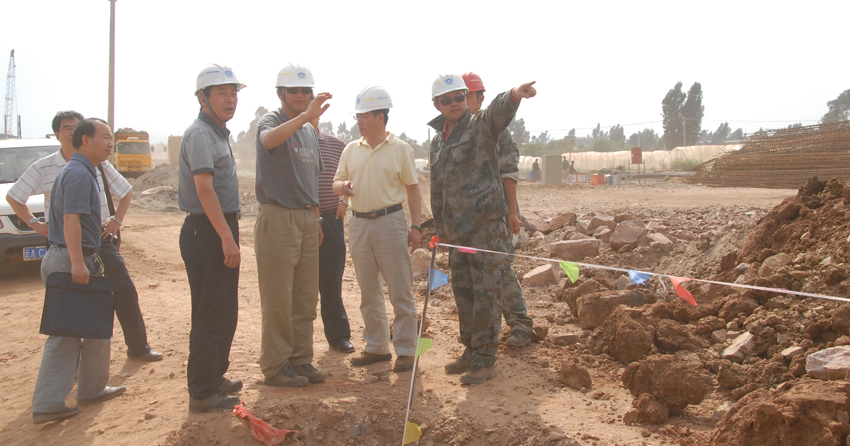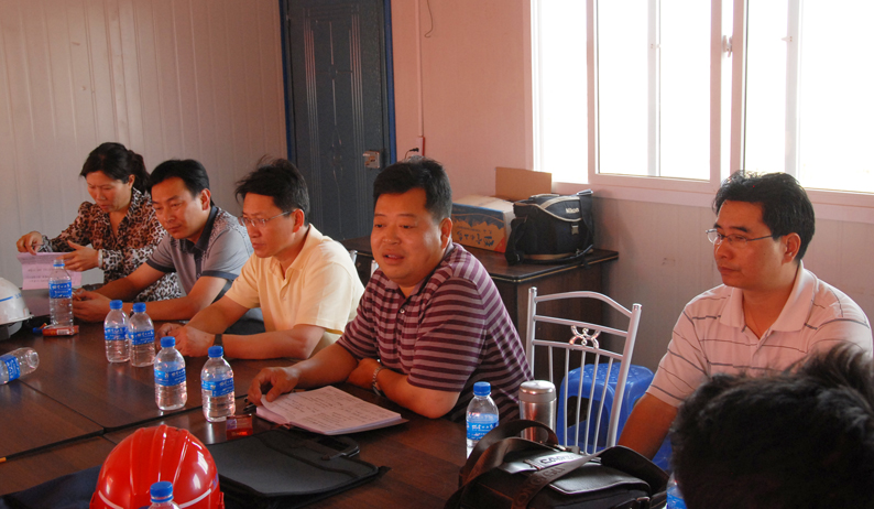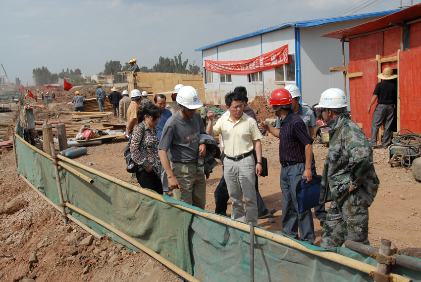 公司副總經理兼第三直管部經理段培勇介紹了工程施工組織管理情況。該工程的工期十分緊張,從4月6日根據(jù)建工集團要求緊急進場增援施工以來,五建公司第三直管部、五建市政工程公司以及近日進場的503直管部一直晝夜施工,連續(xù)奮戰(zhàn),沒有休過一天的節(jié)假日。工程場地非常狹窄,幾乎天天都要為尋找堆土場地費盡心思,還要花費大量精力協(xié)調與當?shù)卮迕竦年P系。在整個工程施工中,不僅與集團內兄弟單位展開無形中的勞動競賽,而且還要與國字號的專業(yè)隊伍同臺競技。參建同志決心為公司和集團榮譽全力一搏,以優(yōu)秀的建設業(yè)績報答上級的信任。針對施工現(xiàn)場地處低洼排水不暢、淤積泥土極其松軟的地質條件,提出了分工合作、協(xié)同作戰(zhàn),搶在雨天到來之前全力拼搏搶進度的工作思路。