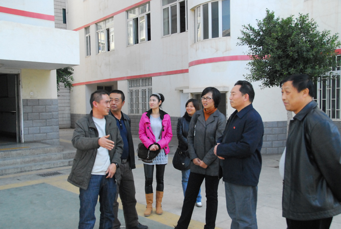 魏華(左一)一行與學(xué)校校長、書記友好交談