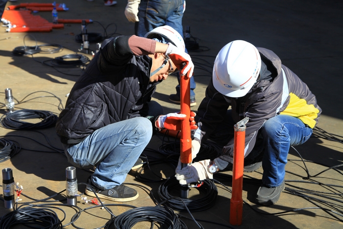 技術(shù)支持: 方森科技 “15MPA、18MPA、21MPA……”2013年1月17日,云南大力神鋼結(jié)構(gòu)廠區(qū)內(nèi)傳來了一個儀器讀數(shù)的聲音,一群五建人雙眼緊盯著一個輪扣架體,神情緊張卻又充滿期盼, 600KN壓力試驗機儀表指針不停地的轉(zhuǎn)動著,“砰”的一聲,儀表指針飄過24MPA旋即回到零位,場地上的人好似卸掉重負一般歡欣起來:“輪扣壓力試驗成功了!”