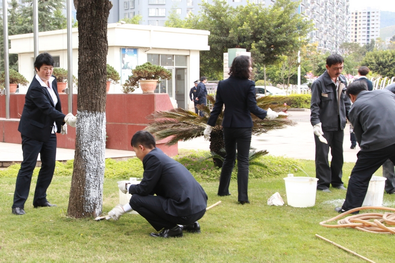 技術(shù)支持: 方森科技 2012年11月7日下午,物業(yè)管理公司全體員工為公司機(jī)關(guān)的綠化樹(shù)刷石灰水,刷好的樹(shù)木遠(yuǎn)遠(yuǎn)看去,整齊而又漂亮。物業(yè)管理公司將在正常開(kāi)展工作的情況下,對(duì)公司機(jī)關(guān)及小團(tuán)山生活區(qū)的綠化樹(shù)進(jìn)行粉刷行動(dòng),通過(guò)這次行動(dòng)來(lái)美化職工生活區(qū),喜迎黨的十八大勝利召開(kāi)。