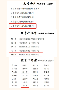 近日,昆明市建筑業(yè)協(xié)會公布2025年度評先創(chuàng)優(yōu)結(jié)果,公司榮膺2025年度昆明市建筑業(yè)“先進企業(yè)”,實現(xiàn)連續(xù)五年榮獲該項榮譽;公司黨委書記、董事長、迪慶公司董事唐生炳獲評昆明市建筑業(yè)“優(yōu)秀企業(yè)家”;同時,蘇偉、趙志坤、劉俊峰、肖本風(fēng)4名職工獲評昆明市建筑業(yè)“優(yōu)秀工作者”。公司將以此次獲獎為新的起點,繼續(xù)秉持“建美好生活 投幸福未來 為企業(yè)謀發(fā)展 為職工謀幸福”的企業(yè)使命,堅持“以工匠精神為引領(lǐng) 聚焦…
