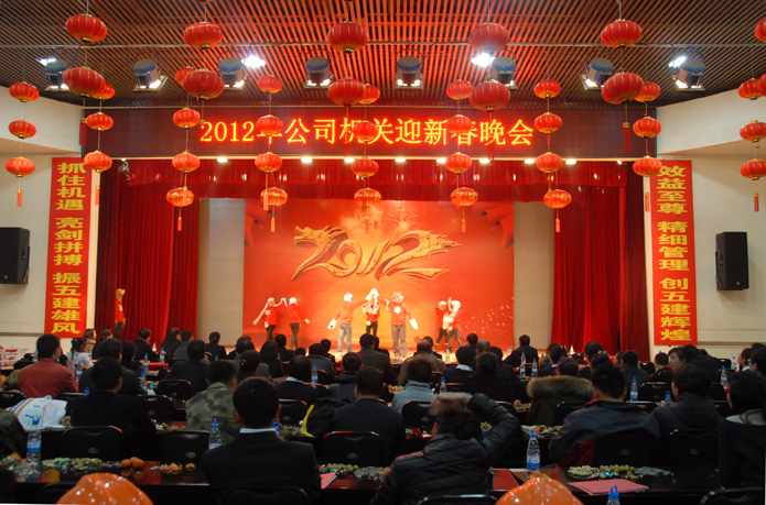 春節(jié)臨近之際,為感謝機(jī)關(guān)廣大干部職工一年來的辛勤工作。2012年1月17日晚,機(jī)關(guān)黨支部在公司禮堂舉辦2012年迎新春晚會。公司領(lǐng)導(dǎo)班子成員集體為晚會獻(xiàn)藝詩朗誦及小合唱《美麗的草原》。公司黨委書記李文智為晚會致辭。 晚會在熱鬧的舞龍表演中開始,或優(yōu)美而感動的合唱《明天會更好》,或搞笑而有意義的小品《酒駕》、《招聘》、《交報(bào)表》,或充滿現(xiàn)代氣息的時裝...