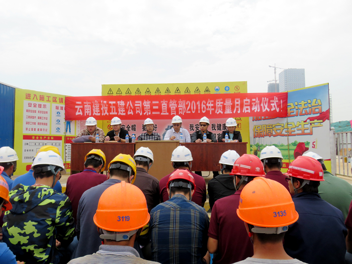 9月7日下午,第三直管項目部在云南省少數(shù)民族語言節(jié)目譯制中心(含演播廳)工程項目啟動了直管部“質(zhì)量月”活動。直管部核心團隊、骨干員工及勞務(wù)公司人員50余人參加了啟動儀式。 結(jié)合今年“提升供給質(zhì)量 建設(shè)質(zhì)量強國”的主題及集團、公司的相關(guān)要求,直管部生產(chǎn)管理負責(zé)人楊欽宣讀了直管部質(zhì)量月活動方案,直管部書記、技術(shù)負責(zé)人、廣電項目...
