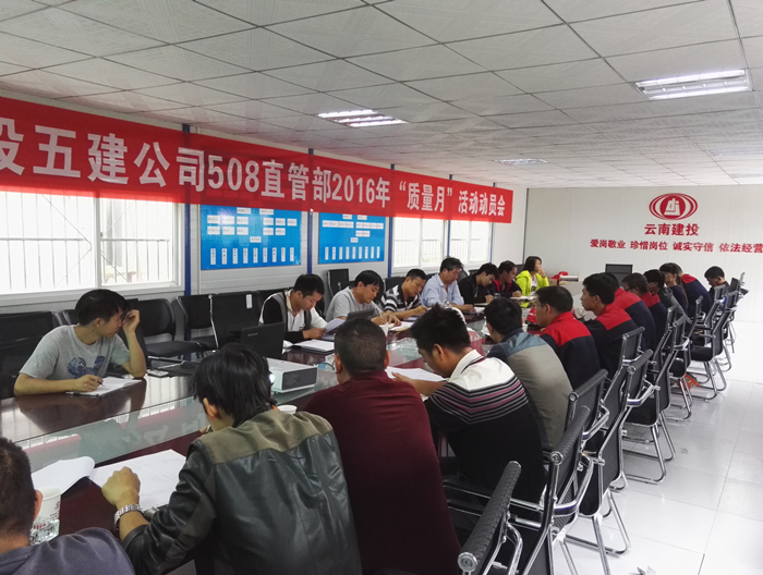 9月8日,五〇八直管項目部在海源財富中心項目部舉行“質量月”活動啟動儀式,直管部在昆領導班子及項目管理人員共20人參加。 直管部圍繞2016年“質量月”主題——“提升供給質量 建設質量強國”。結合集團、公司活動要求,啟動儀式上直管部書記羅志宣讀此次活動的方案。 會上,羅志介紹了本次活動...