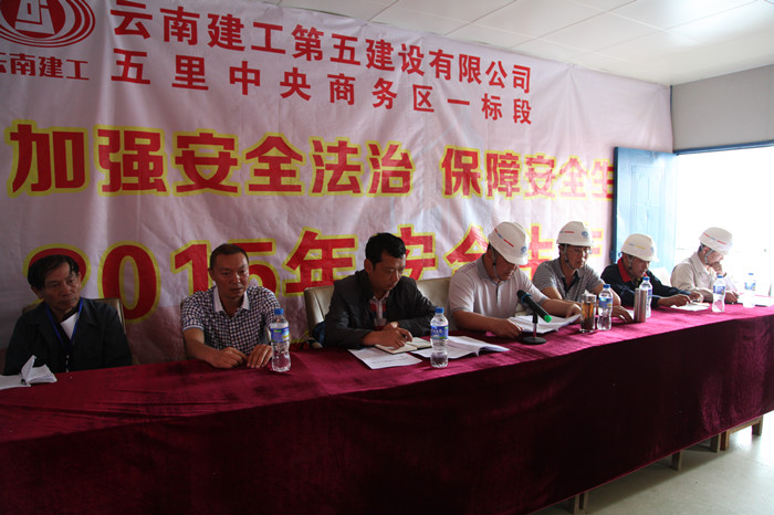 “我代表云南建工第五建設(shè)有限公司,昆明市官渡區(qū)五里中央商務(wù)區(qū)A22號(hào)地塊一標(biāo)段項(xiàng)目部全體管理人員鄭重宣誓:作為項(xiàng)目管理人員,我們將以‘加強(qiáng)安全法治,保障安全生產(chǎn)’為主題,認(rèn)真學(xué)習(xí)《安全生產(chǎn)法》……創(chuàng)建‘人人管安全,人人要安全’的和諧現(xiàn)場(chǎng)……”這是五〇七直管項(xiàng)目部五里中央商務(wù)區(qū)項(xiàng)目部項(xiàng)目經(jīng)理李朝松在“安全生產(chǎn)月”活動(dòng)啟動(dòng)中所作的宣誓承諾。  ...