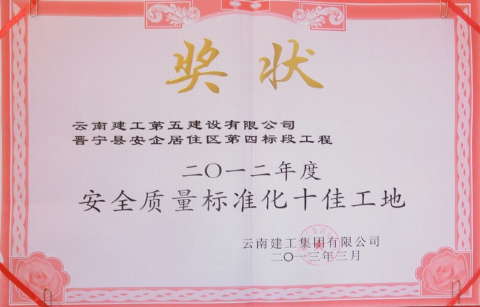 五〇三:晉寧縣安企居住區(qū)第四標(biāo)段工程獲兩項(xiàng)獎(jiǎng)狀