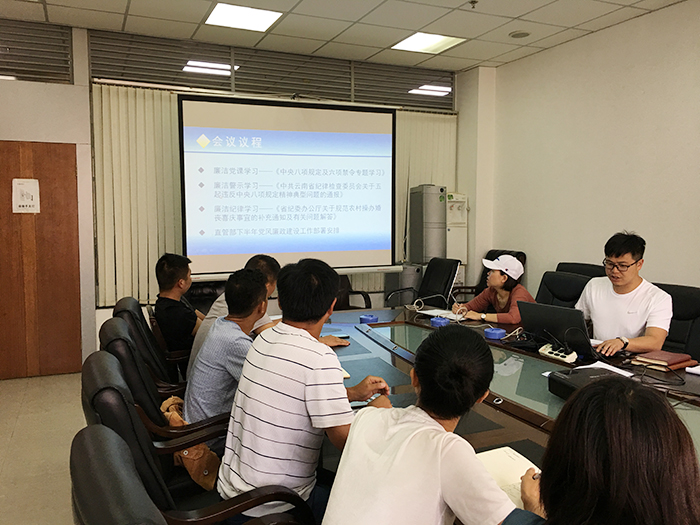 7月9日,第一直管部黨支部召開黨風(fēng)廉政建設(shè)專題會(huì),研究部署下半年黨風(fēng)廉政建設(shè)工作。 直管部黨支部書記熊志帶領(lǐng)大家重溫了“中央八項(xiàng)規(guī)定”、“六項(xiàng)禁令”的具體內(nèi)容,分別從經(jīng)費(fèi)管理、公務(wù)接待、會(huì)議活動(dòng)、公務(wù)出差、公款旅游、臨時(shí)出國(guó)、公務(wù)用車改革、停建與清理辦公用房、操辦婚喪喜慶事宜、工作紀(jì)律、廉潔自律11類行為進(jìn)行了剖析,以案例說紀(jì)律,加深直管部人員對(duì)“中央八項(xiàng)規(guī)定”等精神的理解認(rèn)知,...